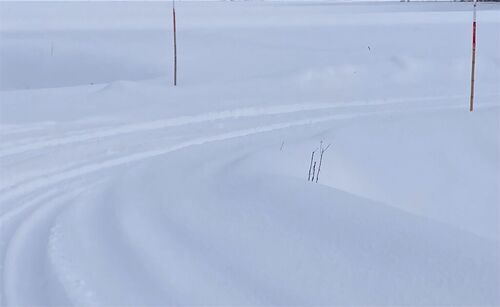 道路脇に立つポールで雪道を知る...